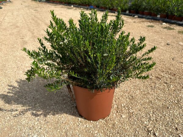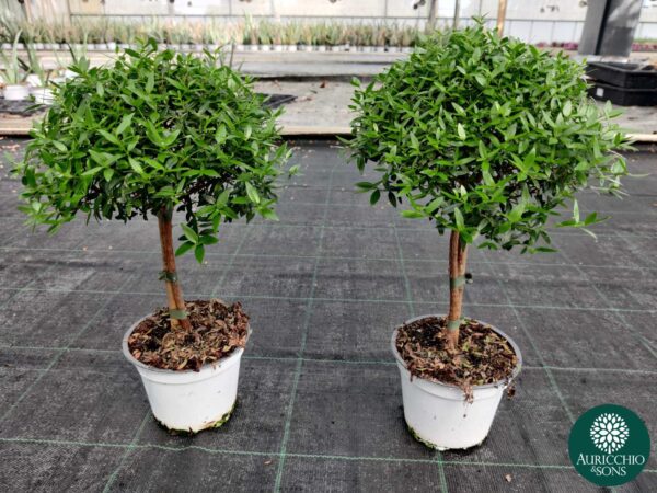 Myrtle is a plant belonging to the Mirtaceae family, native to the Mediterranean coasts. It is an aromatic plant widely used for its medicinal properties and for the production of the homonymous liqueur. It is characterized by leathery, dark green, shiny foliage, full of glands which are then the source of essential oils. From late spring until summer, it produces rather small white inflorescences. It also produces fruits, that is, dark colored berries.