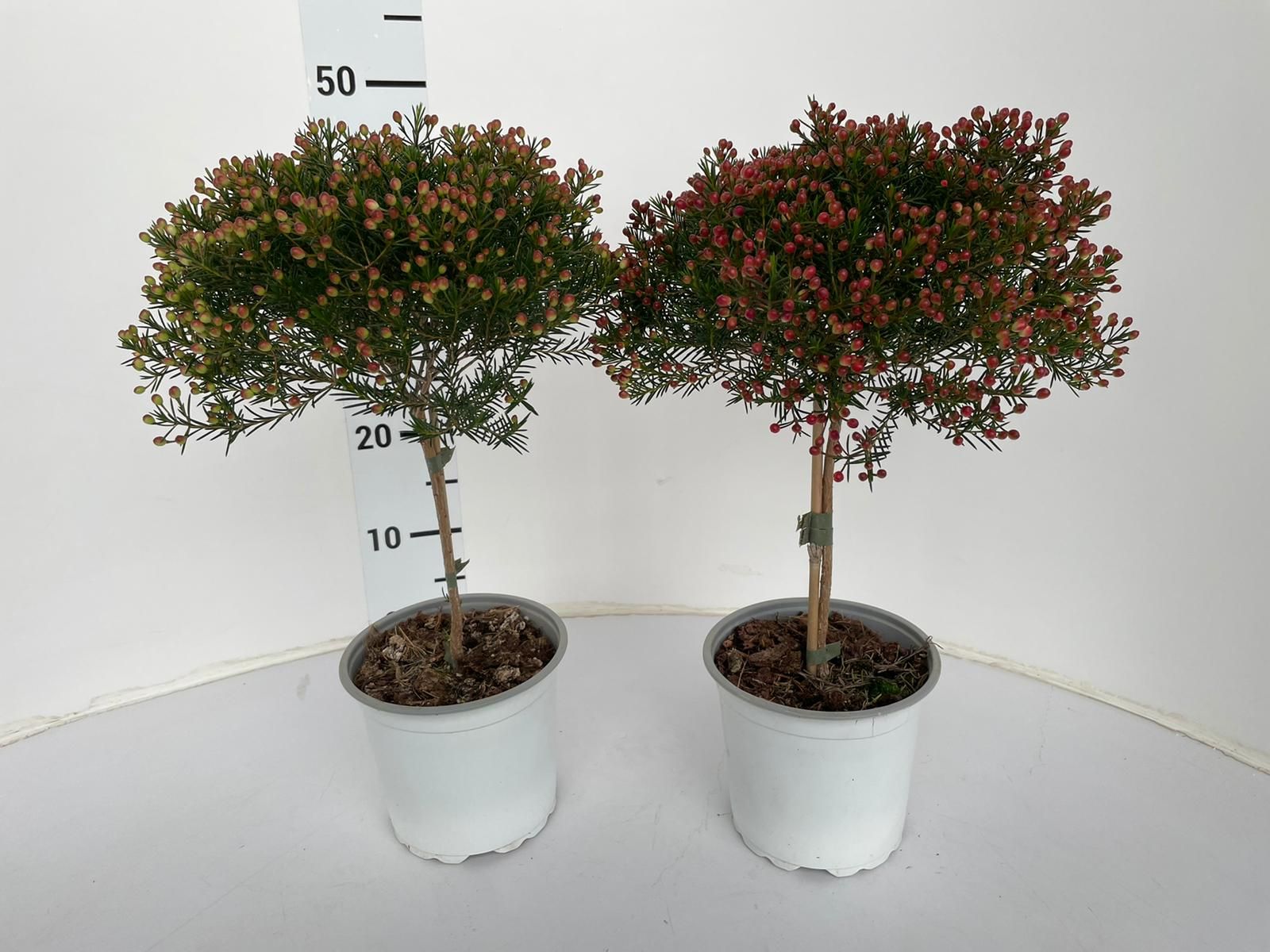 Plant native to Australia, belonging to the Myrtaceae family. Shrub plant, covered by deep green needle-like leaves, aromatic if rubbed. The flowers can bloom both in winter and in spring and have five deep pink petals, with a darker colored center equipped with a pistil. The plant requires a sunny exposure. Watering should be regular and moderate. It can be fertilized with a slow release product. The ideal soil should be well drained.